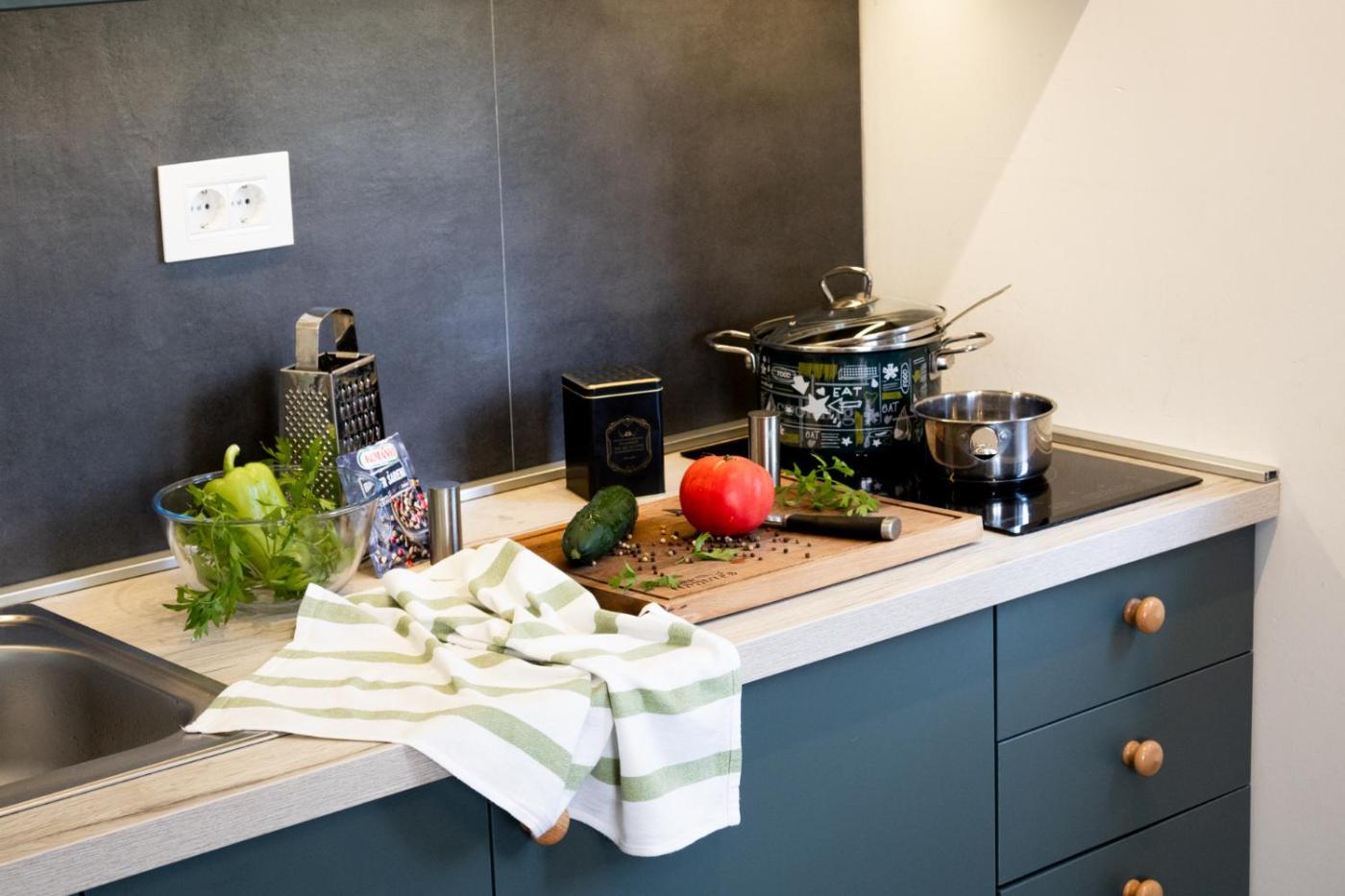 One-Bedroom Apartment. The well-equipped kitchen has a stovetop, a refrigerator, kitchenware and a microwave. Boasting a terrace with garden views, this apartment also features a private entrance and a flat-screen TV with streaming services. The unit has 1 bed.